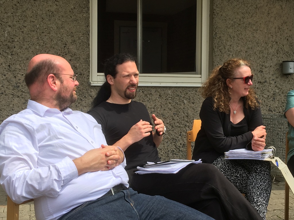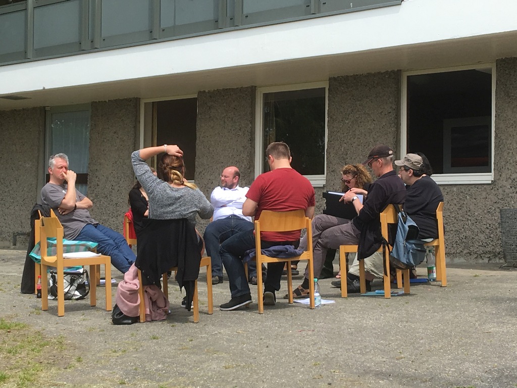 Intensive und vor allem sehr offene, konstruktive Gespräche über Verbesserungsmöglichkeiten folgten, bei denen die gesamte Gruppe aktiv mitwirkte. So konnten für ausgewählte Szenen die weiteren Schritte erarbeitet werden, um Dramaturgie, Spannungsbögen, Rollen und alles, was sonst dazu gehört, weiter auszuarbeiten.